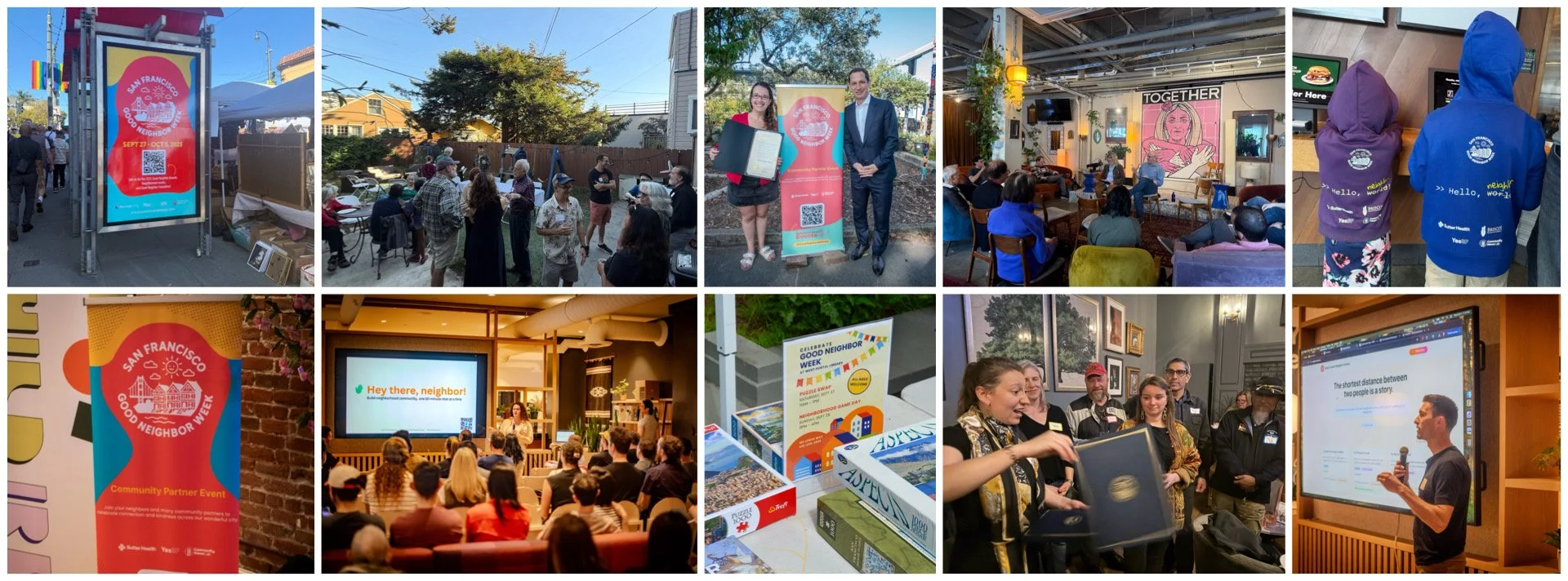 In our inaugural year, 40 community partners hosted city-wide events that were attended by 4000+ San Francisco residents. 200+ residents nominated their neighbors for the SF Good Neighbor Awards. We launched the country’s first Good Neighbor Hackathon, showcasing local technology solutions, developed in San Francisco, that build relationships between neighbors. We encouraged people to spend time with their actual neighbors, with dozens of people reporting that they used the holiday to say hello to their neighbors for the first time. SF Good Neighbor Week serves as inspiration for countless residents about the power of individuals to make a difference in their communities. Building on our inaugural launch, 2026 is the year of deepening our engagement. With the help of a trusted Neighborhood Advisory Council, we are expanding our partnerships with community organizations hosting events, recognizing neighborhood leaders, creating resources for San Francisco residents to meet their neighbors, and hosting the country’s first Good Neighbor Hackathon, with increased participation from local elected officials.